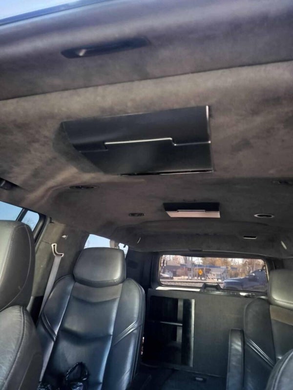 Chrome delete, 4 TVs, 3rd row, remote start, new suspension, tinted windows, full suade headliner, a killers, back of seats, door panels,